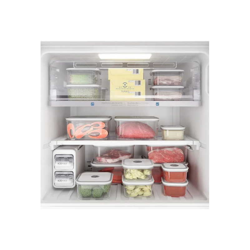 128L para conservar alimentos de diferentes tamanhos. Maior freezer do segmento Top Freezer Combinados Frost Free até 500 litros conforme tabela de eficiência energética; PBE (Programa Brasileiro de Etiquetagem).
