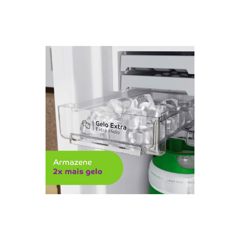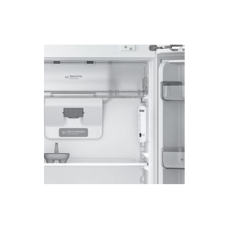 Com 400 litros de capacidade, design moderno e espaço interno bem distribuído, o Refrigerador Duplex Consul é o modelo ideal para quem deseja manter o ambiente organizado e os alimentos muito bem conservados. Frost Free, a Geladeira Consul Duplex não precisa ser descongelada nunca, pois não forma gelo nas paredes do congelador. Além disso, o freezer conta com prateleira flex, possibilitando que você organize o espaço com prateleira inteira, meia prateleira ou nenhuma. E, se você é fã de bebidas bem geladas, vai amar o compartimento de gelo extra, que possibilita armazenar gelo pronto, fora das forminhas. Outro destaque do equipamento é o Filtro Antiodor, que elimina cheiros desagradáveis na geladeira. Como tudo o que a Consul desenvolve, o espaço interno da porta dessa geladeira foi projetado de uma maneira muito bem pensada. Com 10 combinações possíveis, ela oferece praticidade no armazenamento de garrafas, jarras e tantos outros itens. Como se não bastasse, esse refrigerador ainda conta com gavetão transparente para frutas e legumes e gaveta extrafria, para os alimentos que precisam de maior refrigeração. A Geladeira oferece 410 litros de capacidade, além de um espaço flex que permite você organizar tudo do seu jeito. Nela você organiza os compartimentos da porta do jeito que preferir, e nas prateleiras do freezer você tem 3 formas diferentes para organizar. Tudo de acordo com a sua necessidade. Possui também um gavetão transparente de frutas e legumes para você organizar e visualizar os alimentos de forma prática, trazendo eficiência e praticidade para você. Além disso, o Refrigerador conta com um filtro antiodor que elimina os odores desagradáveis, principalmente aquele de água com gosto de geladeira. Essa geladeira vai além do convencional ao potencializar os nutrientes dos alimentos. Sua gaveta Fresh Zone com Vitamin Power utiliza luzes LED especiais para intensificar as vitaminas C e D, garantindo que sua família desfrute de refeições mais saudáveis e saborosas. Nutrição e praticidade em um único lugar. Possui controle de temperatura interno e para os momentos em que você precisa de resfriamento rápido, a função TURBO entra em ação, garantindo que sua geladeira mantenha a temperatura ideal mesmo quando totalmente carregada.