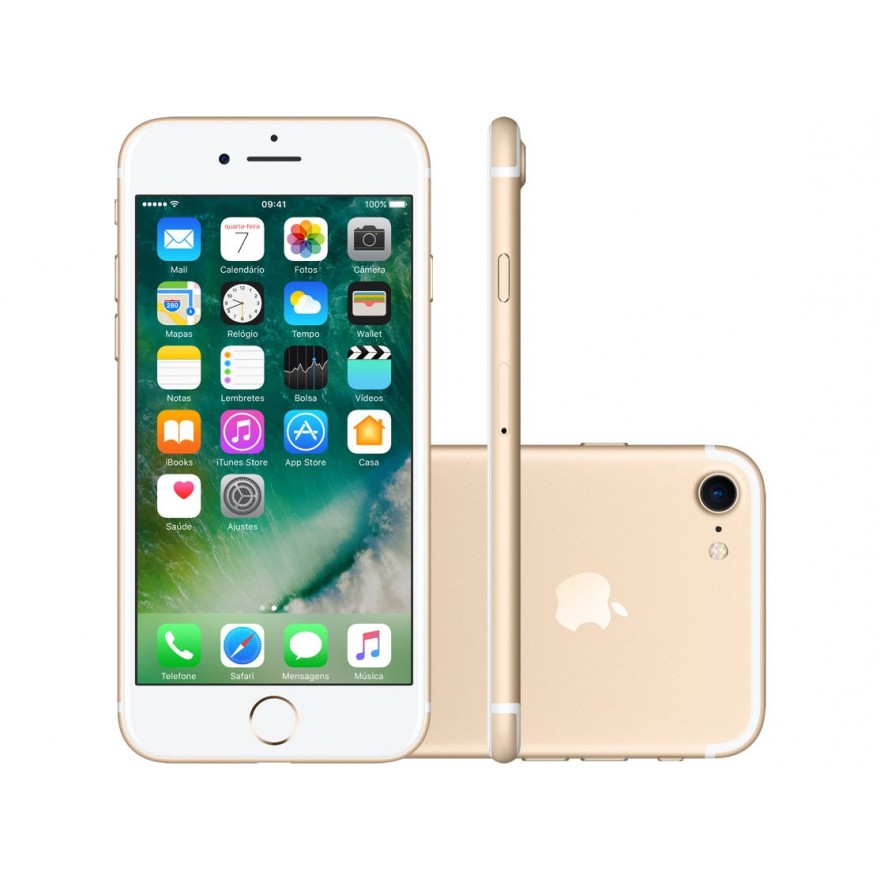 O iPhone 7 melhora consideravelmente as partes mais importantes da sua experiência com o iPhone. Ele traz um conjunto de câmeras completamente novo, o melhor desempenho e a maior duração de bateria até hoje, sistema de alto-falantes estéreo e tela com mais brilho e cores. Além disso, é resistente à água e respingos. Seu design atingiu um nível sem precedentes de precisão e inovação. O botão de Início foi reinventado. É um botão sólido, criado para ser resistente e responder muito rápido. Ele trabalha com o novo Taptic Engine, dando respostas táteis e precisas quando você encosta – e essas respostas podem ser personalizadas. Já a construção unibody dá a sensação de continuidade em todo o aparelho. Quase tudo que você faz no iPhone acontece na tela. É onde você vê suas fotos, mensagens, navega na Internet e faz inúmeras coisas todos os dias. A tela do iPhone usa o mesmo espaço de cores da indústria de cinema digital e o resultado são imagens nitidamente mais brilhantes e vívidas. O que você vê na tela fica tão real que é até difícil de acreditar. Ele já vem com o novo iOS 10, o sistema operacional móvel mais avançado do mundo que deixa seu aparelho ainda mais pessoal, de uma forma poderosa. A interface é bonita e fácil de usar. Sugestões inteligentes aparecem quando você mais precisa e as tecnologias avançadas protegem sua privacidade e segurança. Além disso, conta com a excelente câmera iSight de 12MP com lentes grande-angular e teleobjetiva, FaceTime de 7MP e grava vídeos com tecnologia 4K. Seu Chip A10 Fusion com arquitetura de 64 bits e coprocessador de movimento M10 integrado é o mais poderoso até hoje em um smartphone. Com ele, o iPhone 7 é mais rápido do que qualquer iPhone – e mais eficiente. Isso porque a arquitetura totalmente nova aumenta o processamento quando você precisa e diminui quando não precisa, oferecendo a maior duração de bateria em um iPhone e o dobro da velocidade do iPhone 6. Com todas essas novidades e vantagens, o iPhone 7 é considerado poderoso em cada detalhe. E poderoso como um todo.