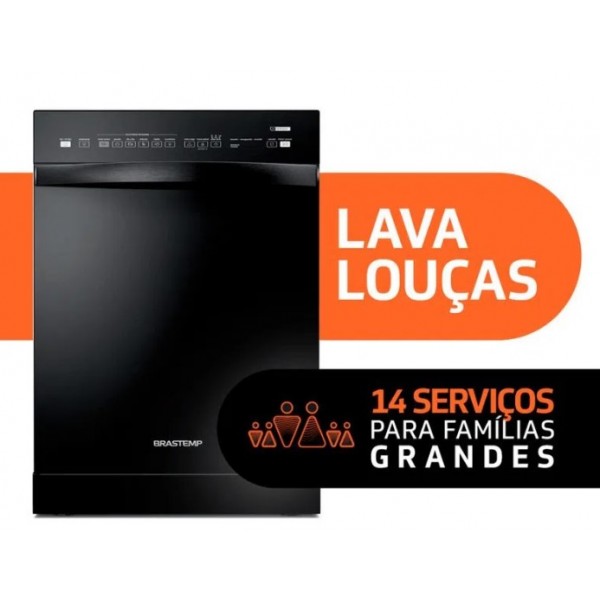 Serviço é o conjunto de peças que uma pessoa utiliza em uma refeição, e a lava-louças tem alta capacidade, 14 serviços no total. Você lava de uma só vez a louça de 14 pessoas. Sua cozinha organizada de maneira inteligente.