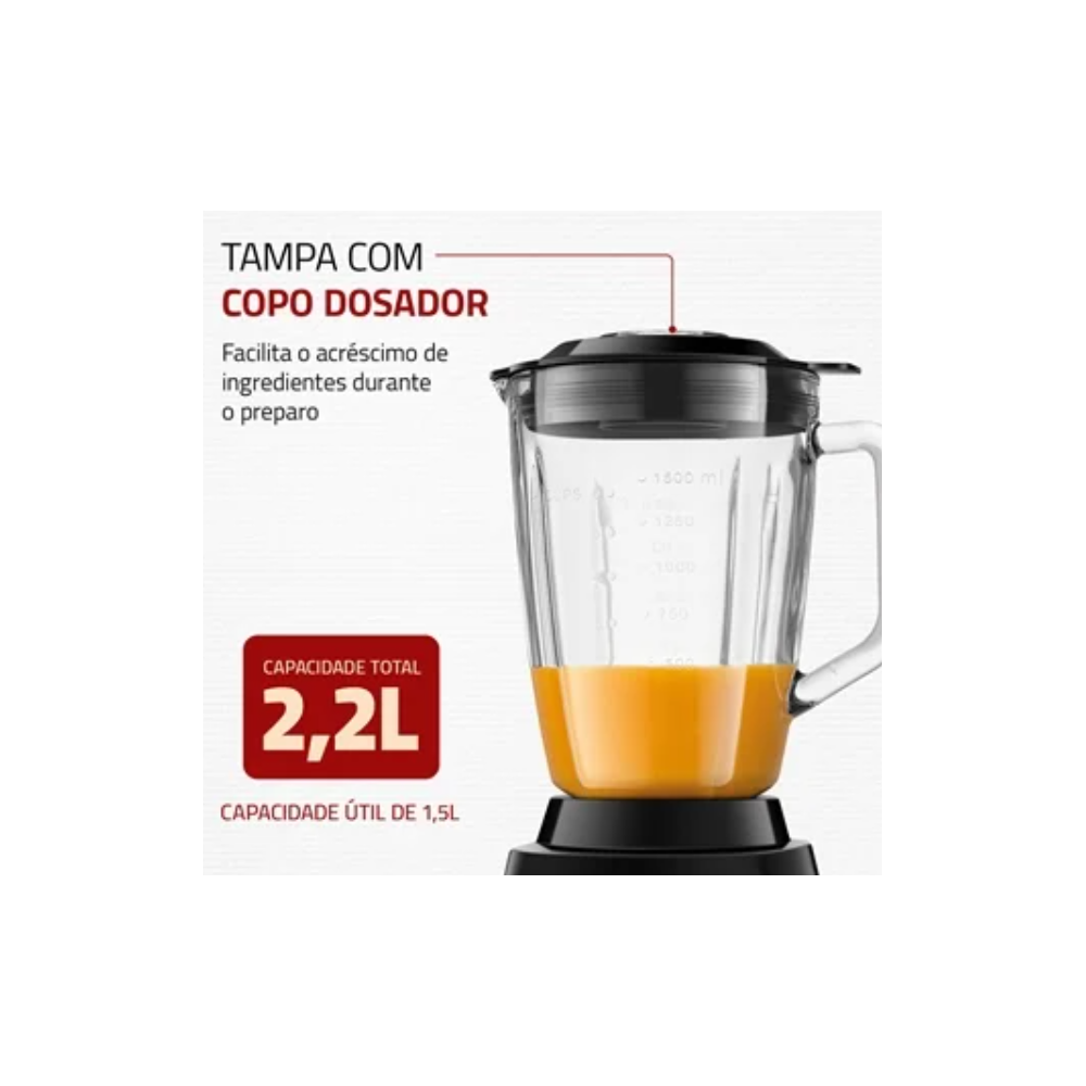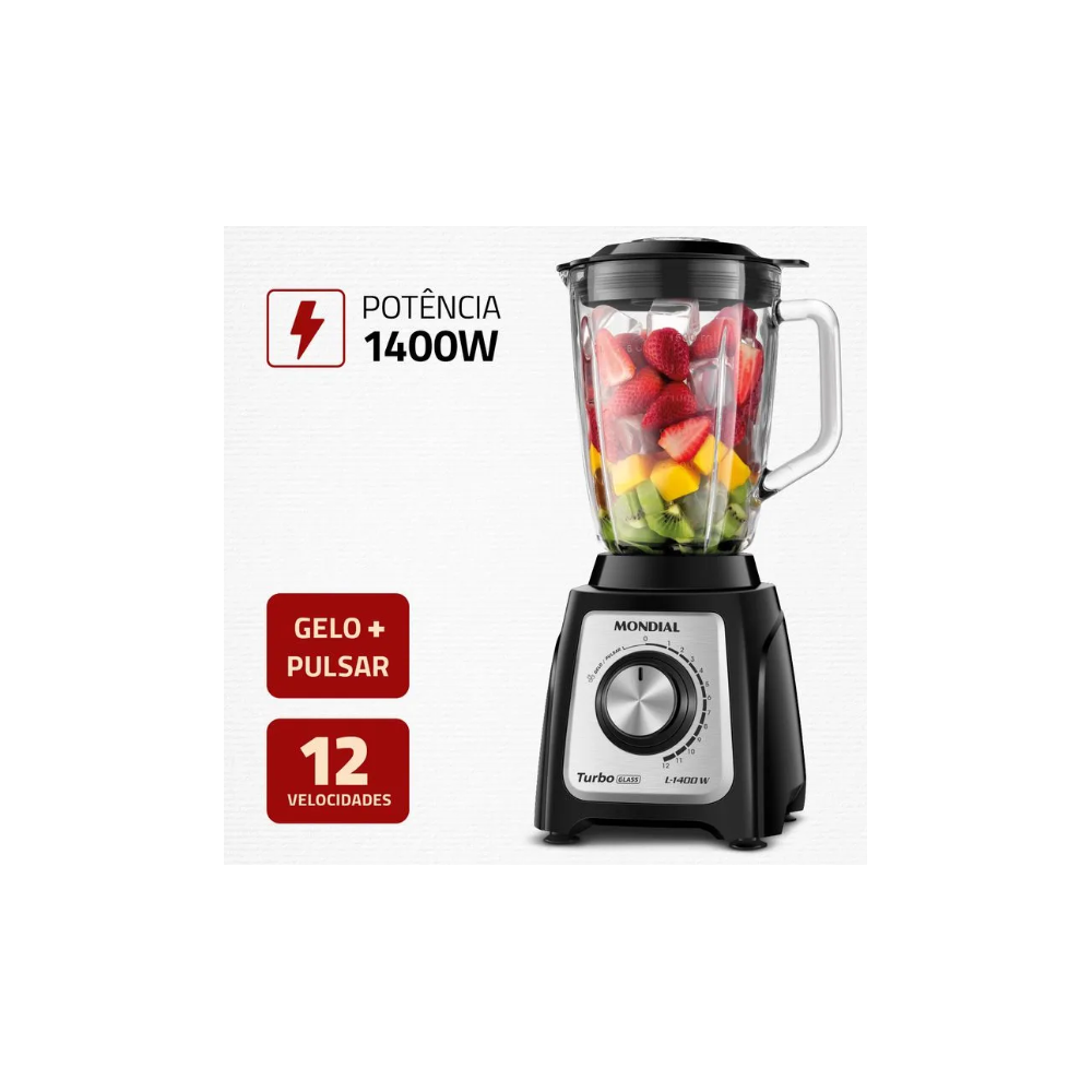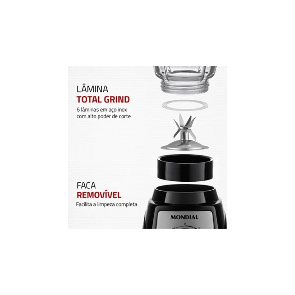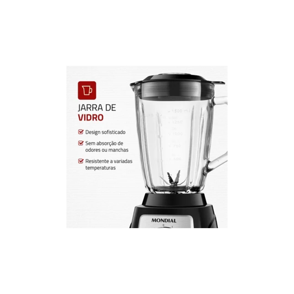 LIQUIDIFICADOR MONDIAL 1400W JARRA DE VIDRO FACA REMOVIVEL