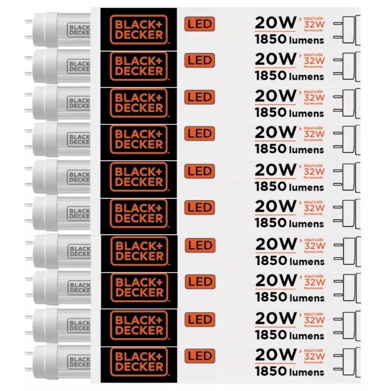 Kit 10 Lampadas Led 20W Tubular Black Decker 120cm 4000K Abraçadeiras e Tomada