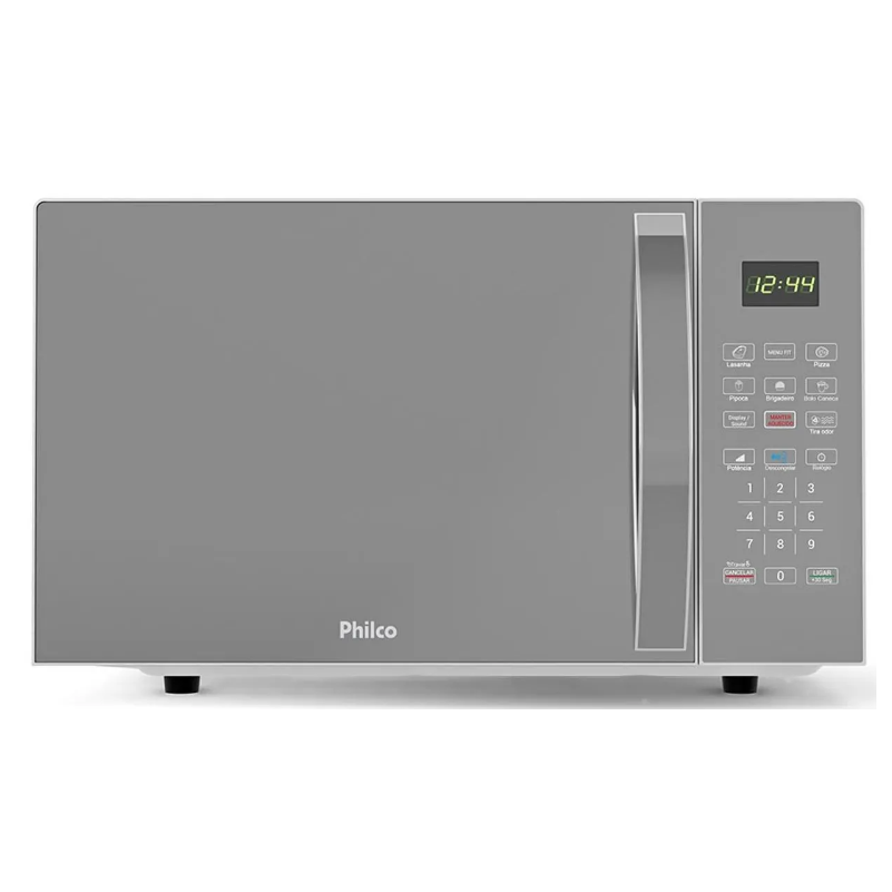 Microondas Philco 25L 1100W Painel Digital com Desodorizador Prata Espelhado