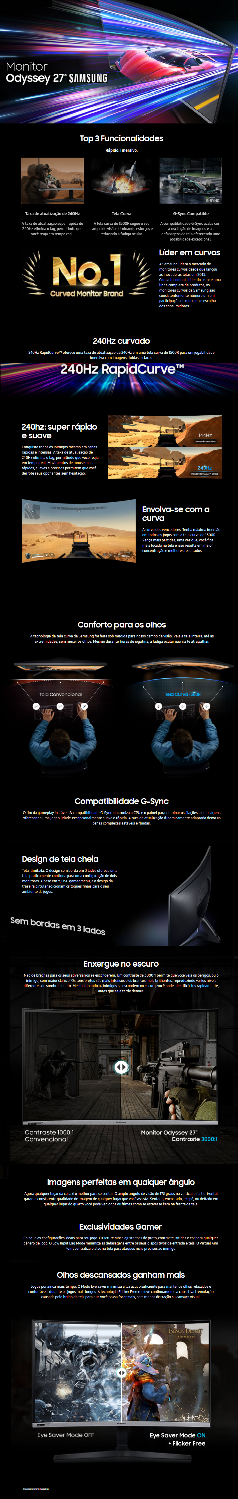 MONITOR GAMER SAMSUNG LED 27 CURVED - BIVOLT - 48W