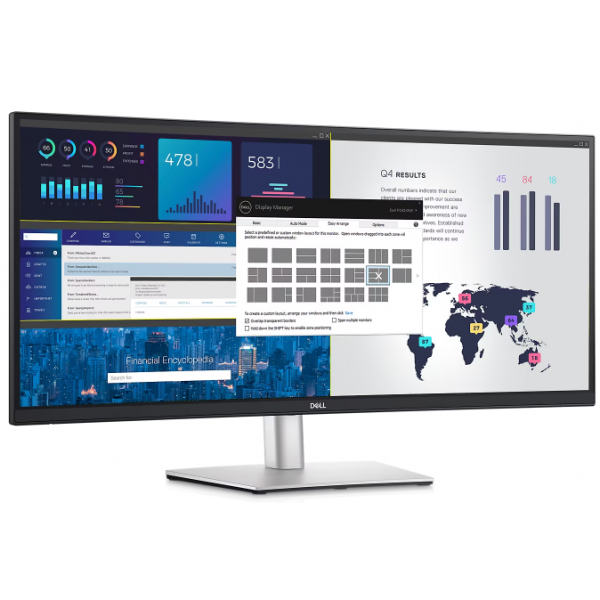 Este elegante monitor apresenta uma base pequena e um design de gerenciamento de cabos que os oculta no riser do monitor, além de muitas opções de conectividade que proporcionam um espaço de mesa organizado no escritório ou em casa. Navegue no menu e ajuste as configurações da tela com o controle de joystick fácil de usar. Oferecemos também a opção de encaixar facilmente a Dell Soundbar. Incline, gire, rode e ajuste a altura do monitor (até 150mm) para poder trabalhar da maneira que considera mais agradável.