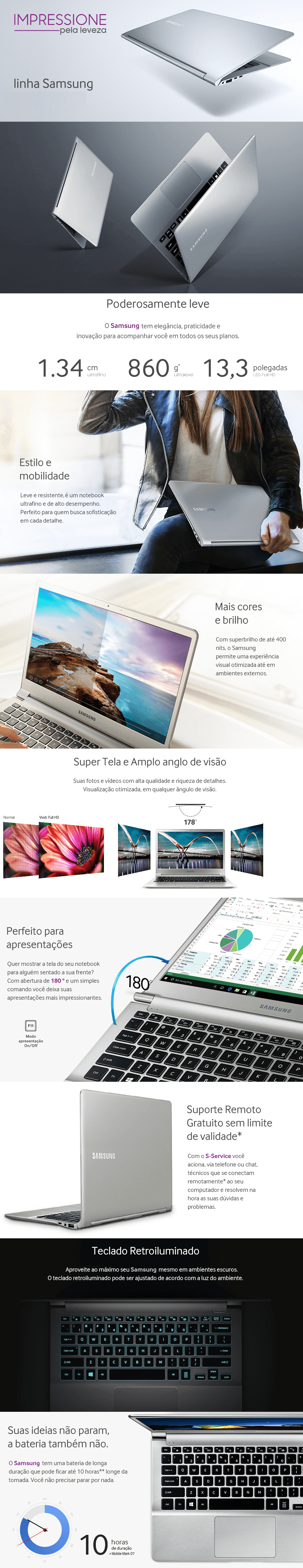 NOTEBOOK SAMSUNG INTEL CORE i7 8GB RAM HD 256GB SSD TELA 13.3 POL WIN 10 - PRATA