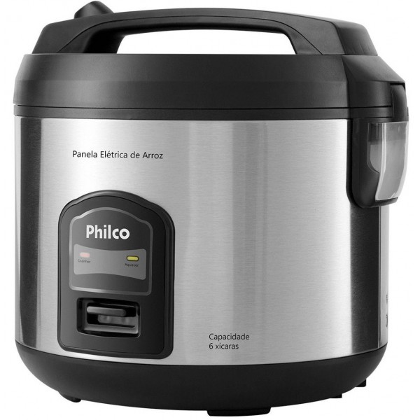 PANELA ELETRICA DE ARROZ PHILCO FAZ 6 XICARAS 500W PRETA/INOX 220V