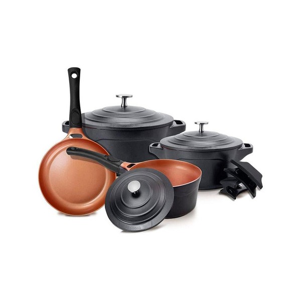 JOGO DE PANELAS EM CERAMICA - PRETO/COBRE - 04 PC