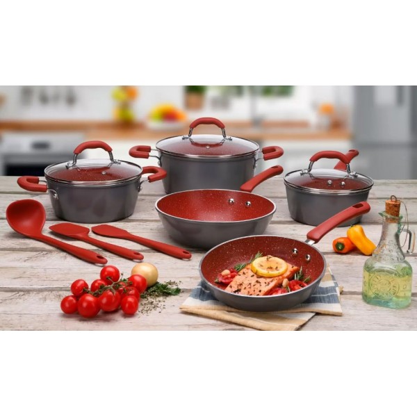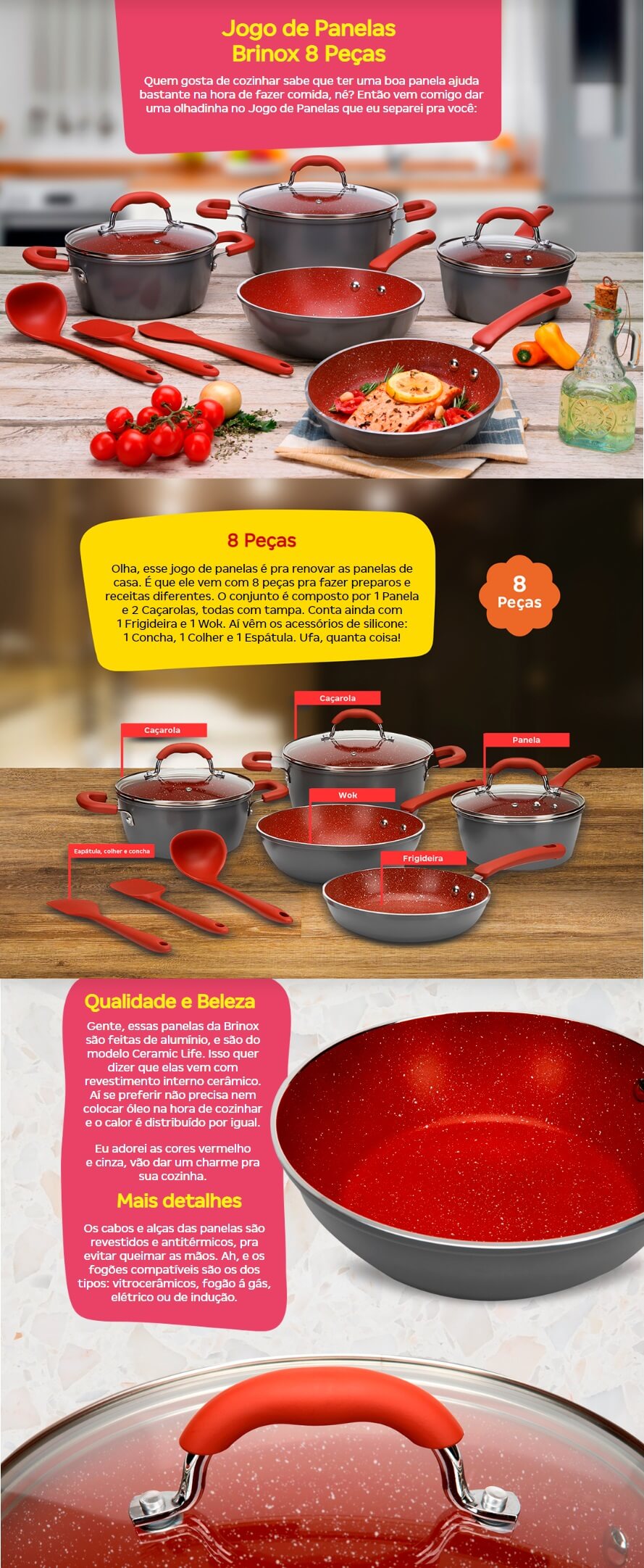 JOGO DE PANELAS 8 PC REVESTIMENTO CERAMICO ALUMINIO VERMELHO BRINOX