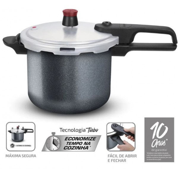 PANELA DE PRESSÃO C/ FECHAMENTO EXTERNO 4,5 LITROS ROCHEDO - GRAFITE