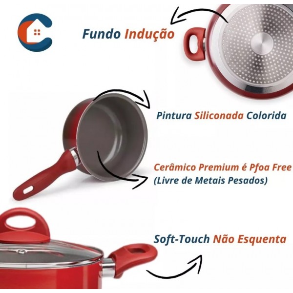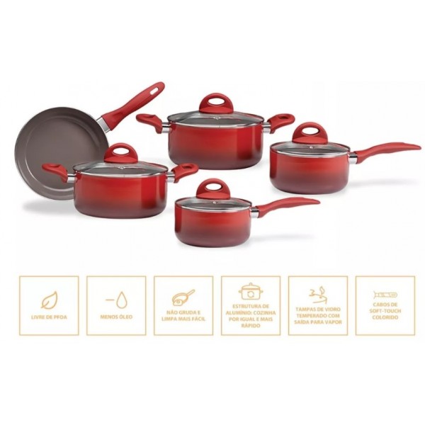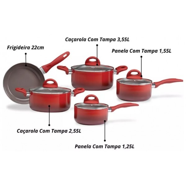 JOGO DE PANELAS INDUÇÃO BRINOX ANTIADERENTE 5 PC - VERMELHO