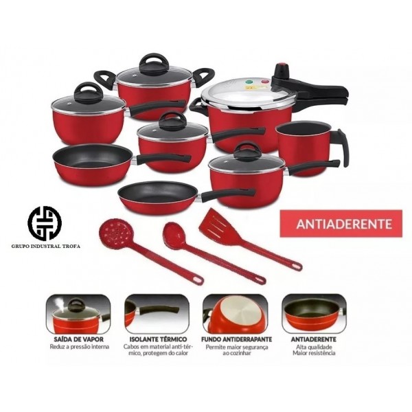 JOGO DE PANELAS TEFLON 11 PC C/ PANELA DE PRESSAO