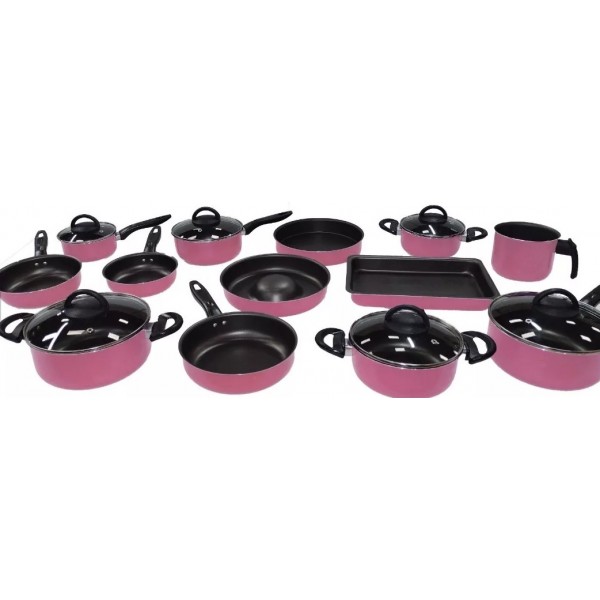 JOGO DE PANELAS TEFLON 13 PC ANTIADERENTE C/ ASSADEIRA - ROSA