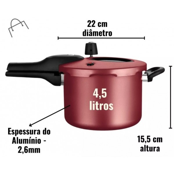 JOGO DE PANELAS ANTIADERENTE 6 PC C/ PANELA DE PRESSAO FECHAMENTO EXTERNO