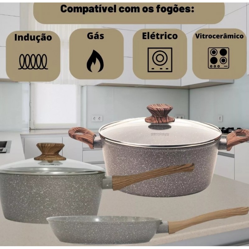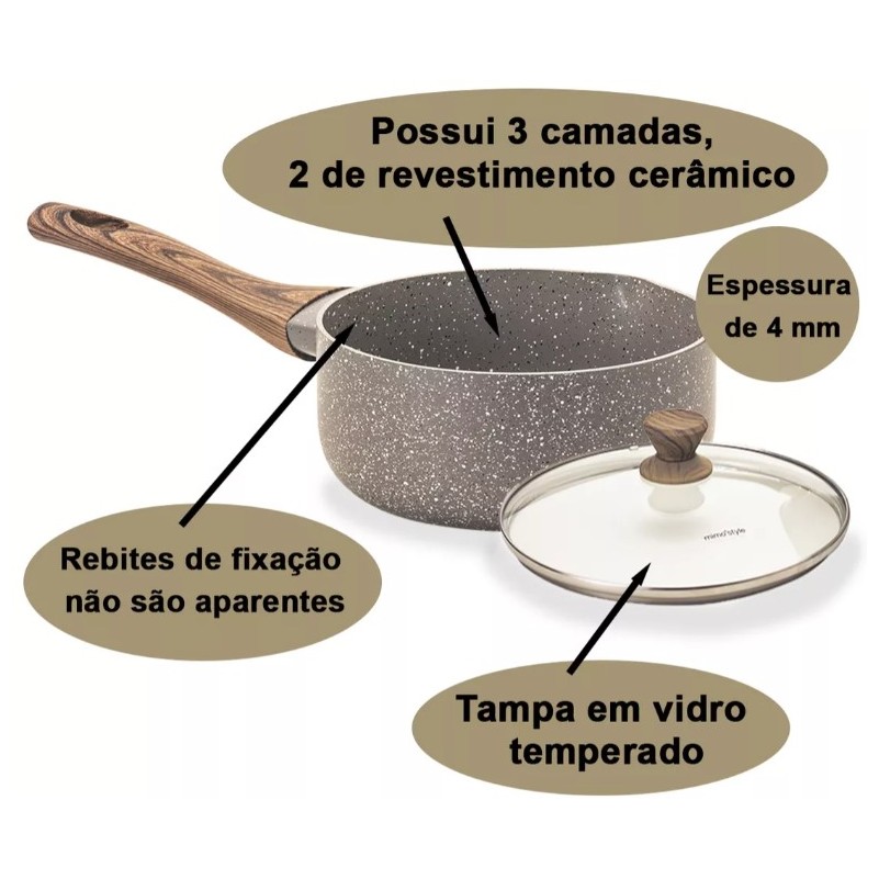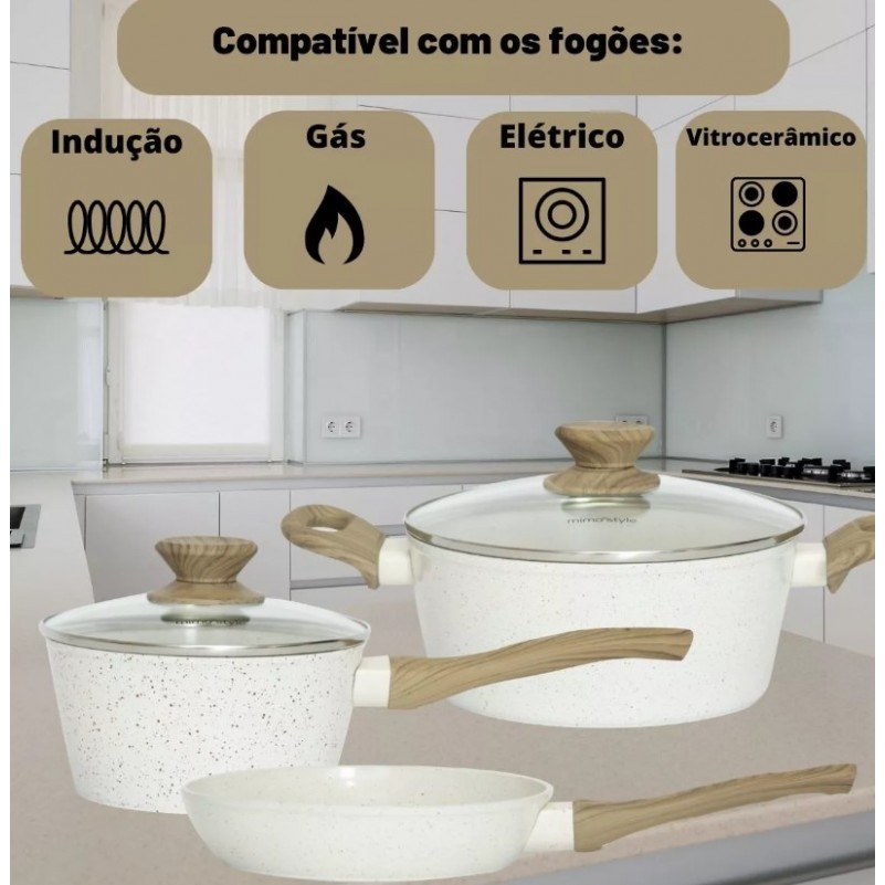 Jogo de Panelas Antiaderente Induçao 5 PC em Ceramica