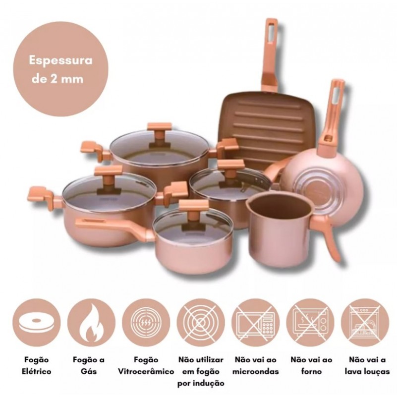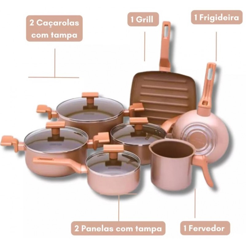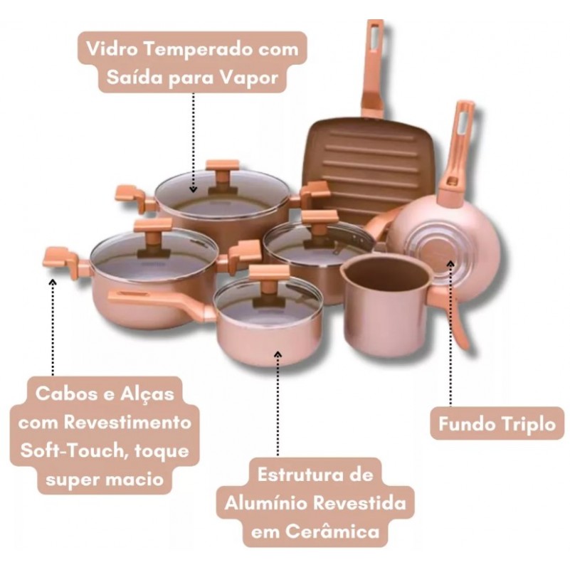 Jogo de Panelas Antiaderente 7 PC em Ceramica Champanhe