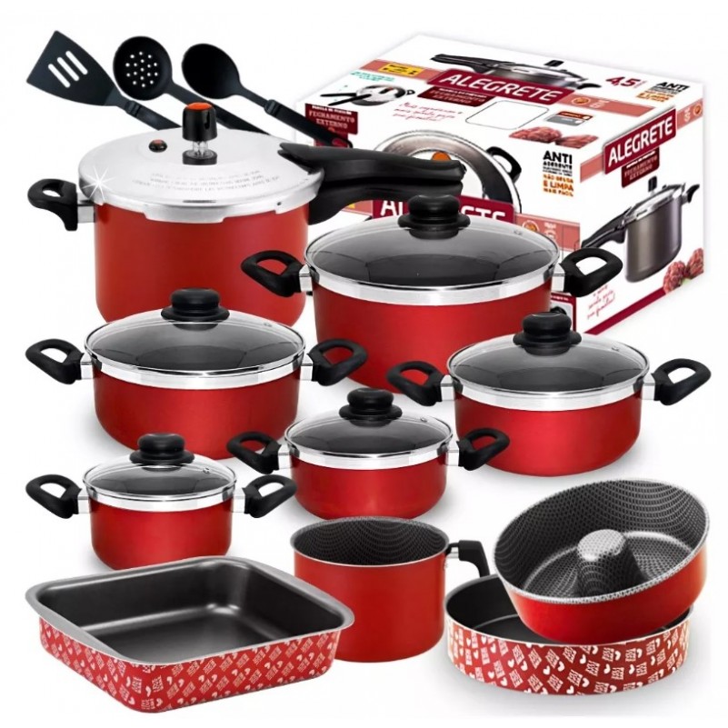 Jogo de Panelas Antiaderente 13 PC com Panela de Pressao Formas e Fervedor