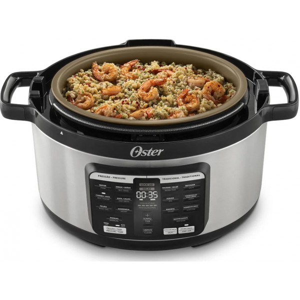 Panela de Pressao Eletrica Digital 5.7L Oster 900W Multifunções Inox
