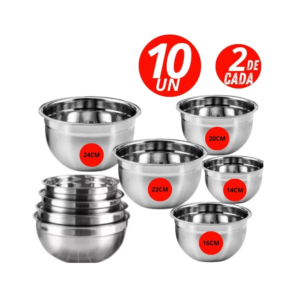 Kit Cozinha 10 Tigelas de Potes Bowls em Aço Inox