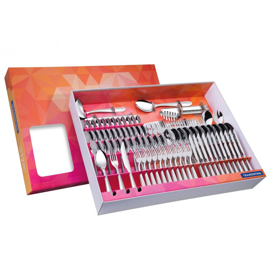 JOGO DE FAQUEIROS TALHERES TRAMONTINA 90 PÇ AÇO INOX