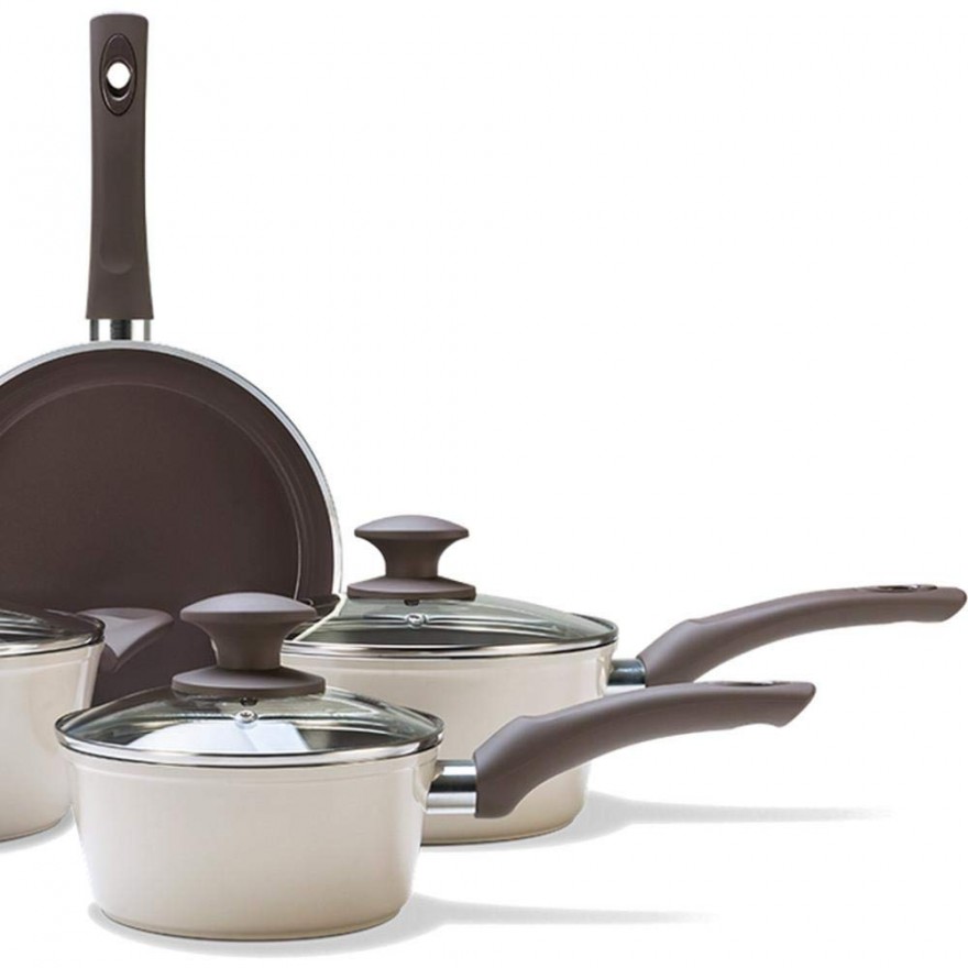 KIT DE PANELAS EM CERAMICA 5 ITENS LINHA LUXO - BRANCA