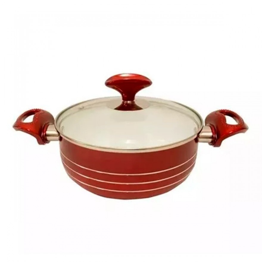 JOGO DE PANELAS ESMALTADAS 7 PECAS REVESTIMENTO EM CERAMICA + 02 COLHERES - RED