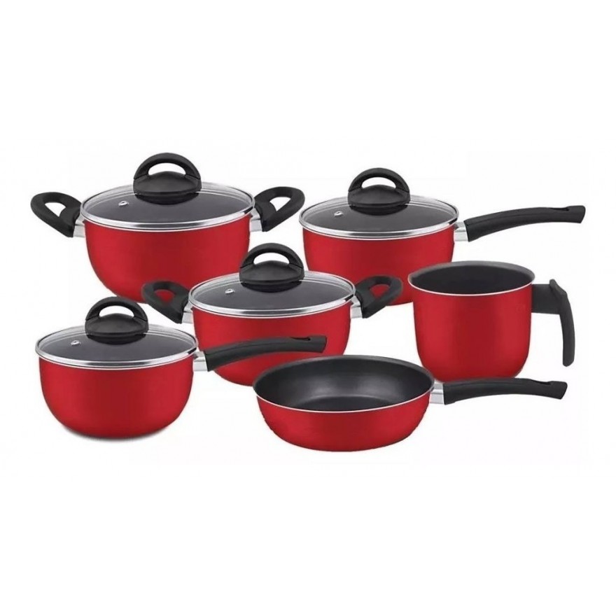JOGO DE PANELAS 06 PC ANTIADERENTE C/ TAMPA DE VIDRO REV. TEFLON + BRINDE