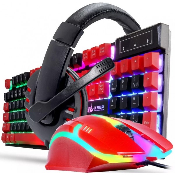 KIT GAMER TECLADO SEMI MECANICO + MOUSE +FONE USB RGB KNUP