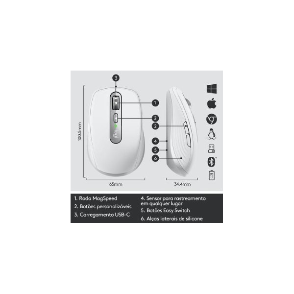Mouse Sem Fio Bluetooth Logitech 4.000 dpi Recarregavel