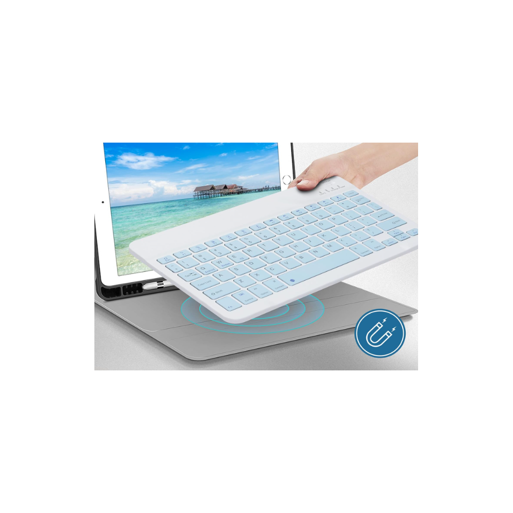 Mini Teclado Blueth para Tablets Recarregavel USB-C Branco Azul