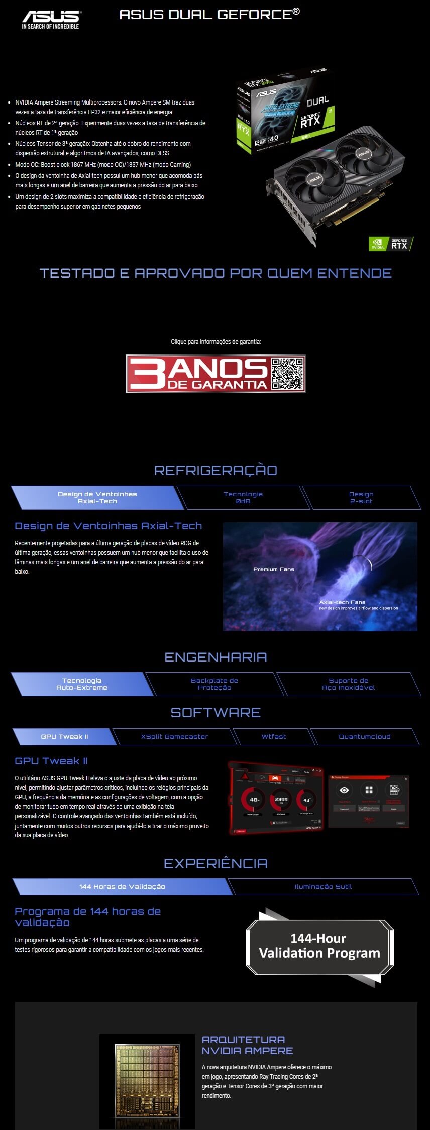 PLACA DE VIDEO 12GB NVIDIA ASUS DDR6 192BIT C/ 3 FANS HDMI DP