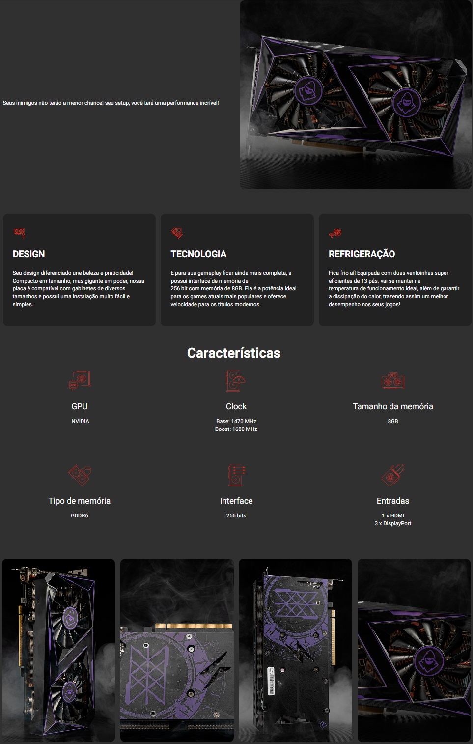 PLACA DE VIDEO NVIDIA MANCER 8GB GDDR6 256BIT C/ HDMI DP - PRETA