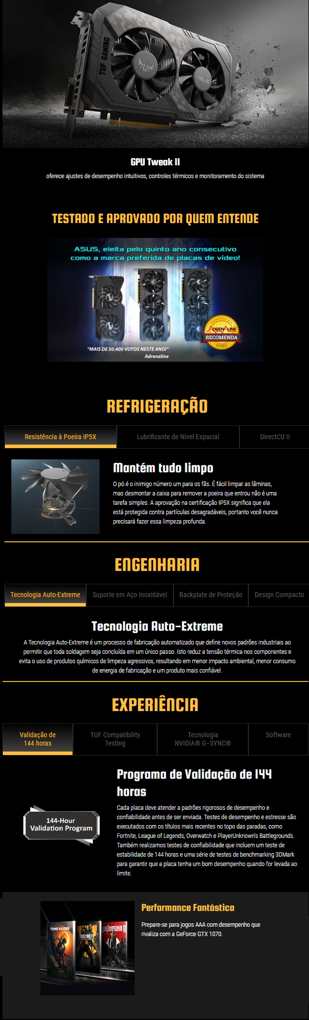 PLACA DE VIDEO NVIDIA ASUS 6GB GDDR6 192BIT C/ HDMI DP DVI
