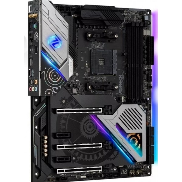 Bem-vindo ao novo padrão Wi-Fi! Placa-mãe da ASRock equipada com o adaptador Intel Wi-Fi 6 802.11ax de última geração. A velocidade estará funcionando até 2.4Gbps e também funcionará nativamente com 2.4Ghz e 5Ghz simultaneamente. Melhoria significativa no suporte bidirecional MU-MIMO também é outro recurso atraente. Bem-vindo ao novo padrão Wi-Fi! Placa-mãe da ASRock equipada com o adaptador Intel® Wi-Fi 6 802.11ax de última geração. A velocidade estará funcionando até 2.4Gbps e também funcionará nativamente com 2.4Ghz e 5Ghz simultaneamente. Melhoria significativa no suporte bidirecional MU-MIMO também é outro recurso atraente. A próxima geração do PCI Express 4.0 é capaz de executar o dobro da velocidade em comparação com a terceira geração anterior. O slot de aço exclusivo da ASRock, com pontos de ancoragem extras, é revolucionário para garantir a estabilidade do sinal e também garantir que placas gráficas pesadas sejam bem instaladas no slot PCI-E com segurança. Forjada com tampa superior do dissipador de calor de liga de alumínio que melhora efetivamente a dissipação de calor. Abaixo está a próxima geração do soquete PCI Express 4.0 Hyper M.2, com o dobro da velocidade de transferência da terceira geração anterior. As placas-mãe ASRock oferecem desempenho impressionante e estética superior para governar sua própria maneira de iluminação colorida! A ASRock oferece um controle muito abrangente para executar os LEDs RGB embutidos ou as faixas de LEDs conectadas, ventiladores da CPU, coolers, chassis e quaisquer dispositivos RGB sem problemas. Ao contrário da maioria das blindagens de E / S pré-montadas, decoradas apenas com esquemas de cores sofisticados. Reservamos mais espaço de tolerância e permitimos que a blindagem IO seja ajustável durante a instalação, cabendo perfeitamente ao chassi sem nenhum problema mecânico. Esta placa-mãe possui um par de portas USB 3.2 Gen2 Tipo A e Tipo C integradas, construídas na E / S traseira, para suportar dispositivos USB 3.2 Gen2 de próxima geração e fornecer taxas de transferência de dados de até 10 Gbps. O consumo de energia premium de 60A da ASRock efetivamente torna a corrente de saturação até três vezes melhor, fornecendo assim uma tensão Vcore aprimorada e aprimorada para a placa-mãe.