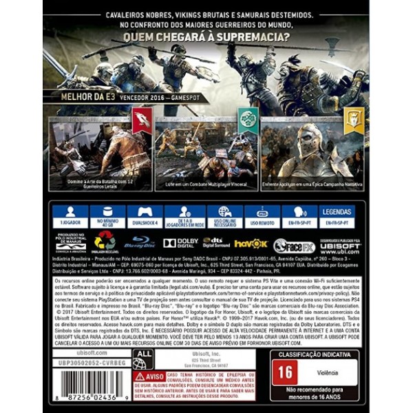 JOGO PS4 FOR HONOR - MIDIA FISICA