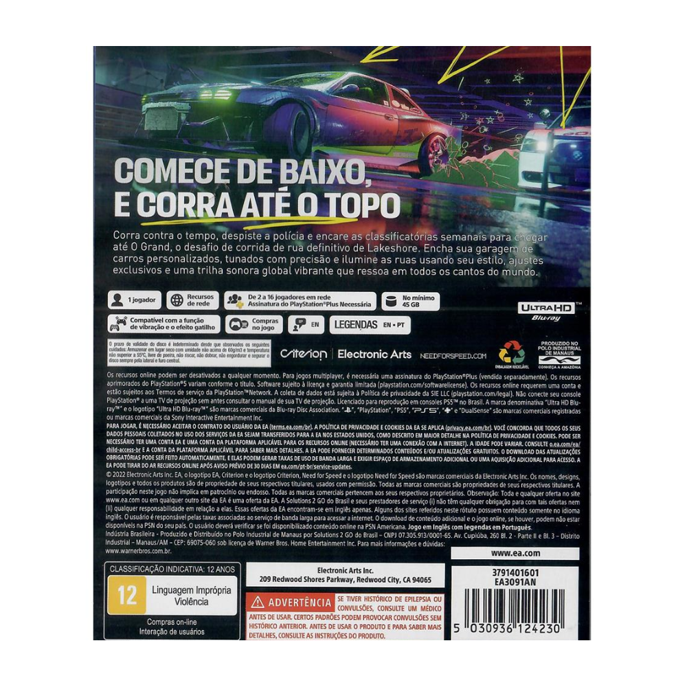 Jogo PS5 Need For Speed Unbound Midia Fisica