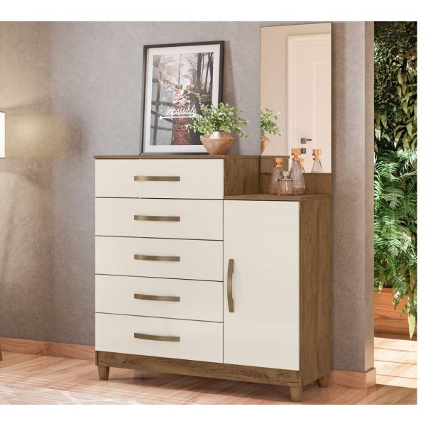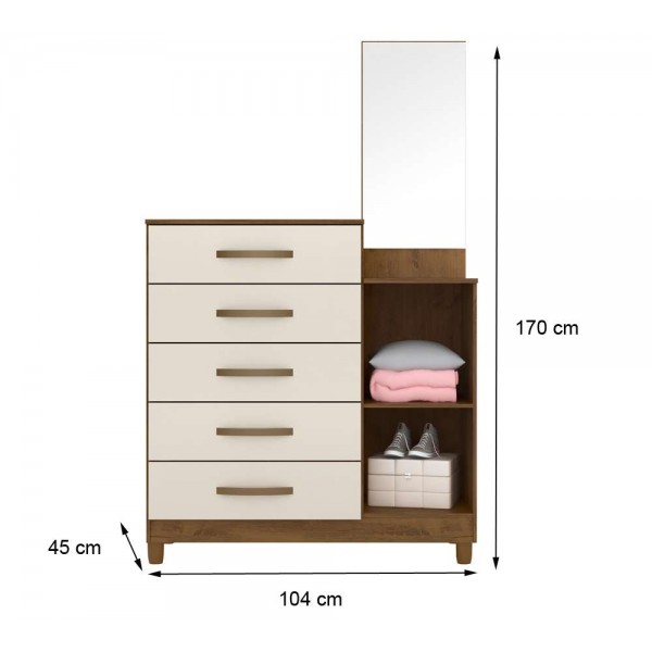 COMODA COM PENTEADEIRA E SAPATEIRA - 5 GATEVAS - CASTANHO/BRANCO