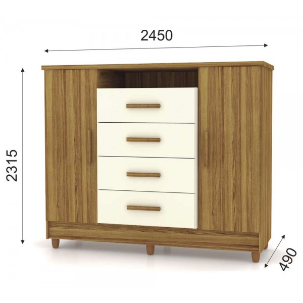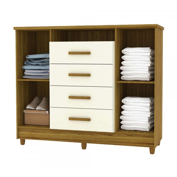 COMODA SAPATEIRA 4 GAVETAS 2 PORTAS - CASTANHO