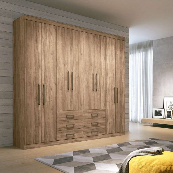 GUARDA ROUPA CASAL MASTER - C/ 8 PORTAS E 6 GAVETAS - CASTANHO/WHITE