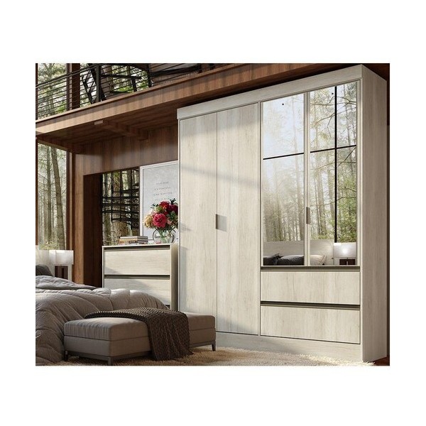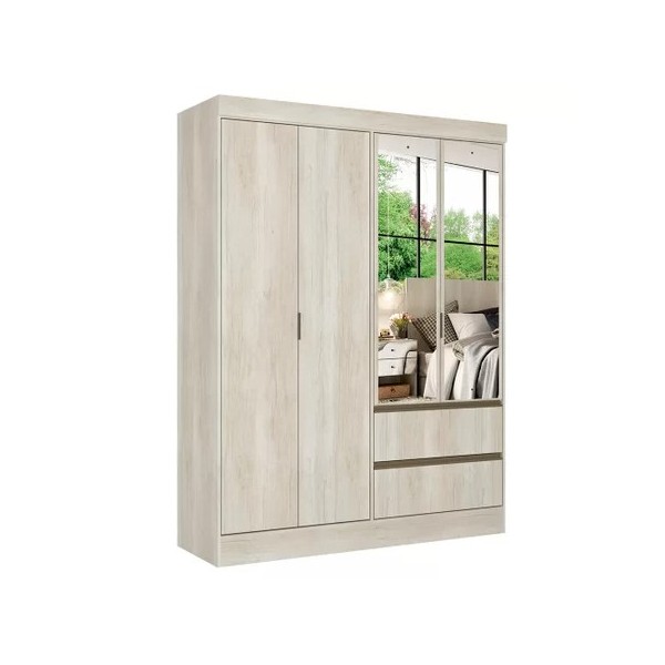 GUARDA ROUPA ROUPEIRO 4 PORTAS 2 GAVETAS C/ ESPELHO - CAPUCCINO
