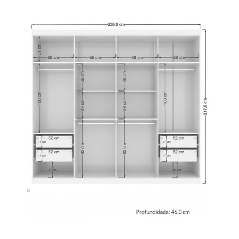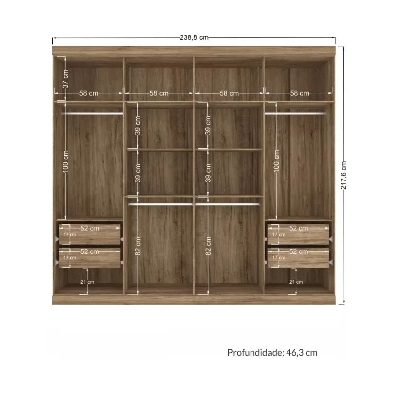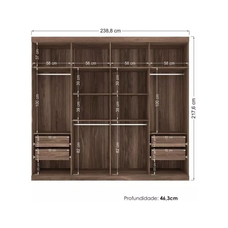Guarda Roupa Santos MDP 8 Portas 4 Gavetas 10 Prateleiras