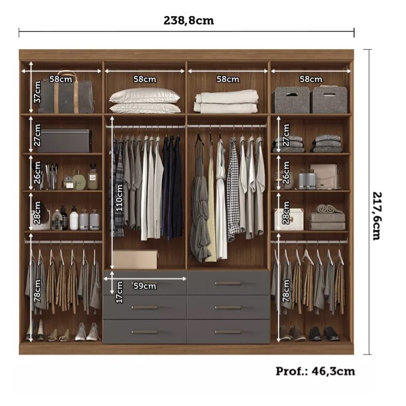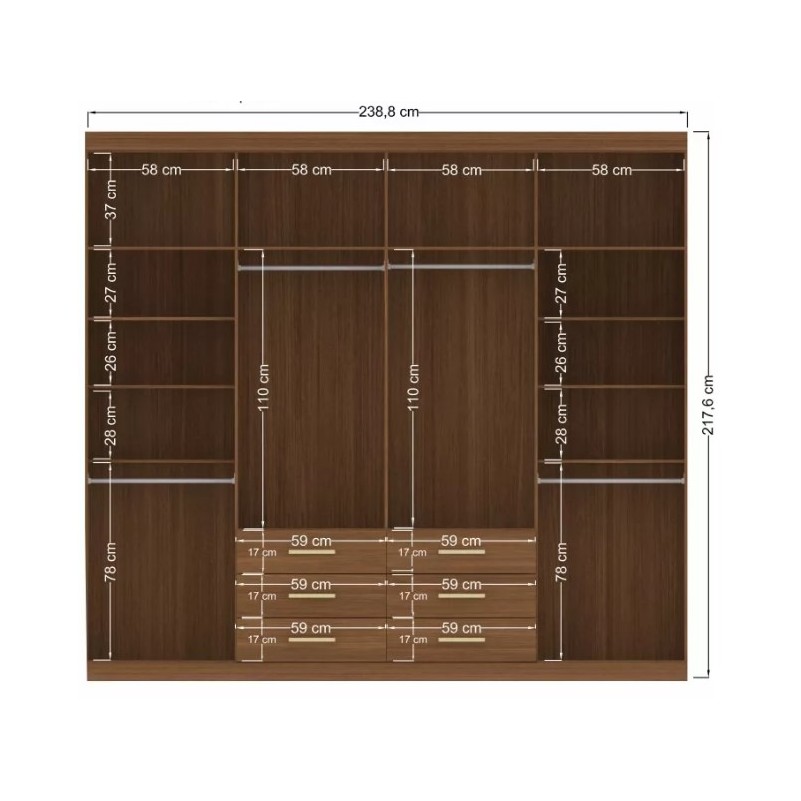 Guarda Roupa Santos com Espelho 8 Portas 6 Gavetas