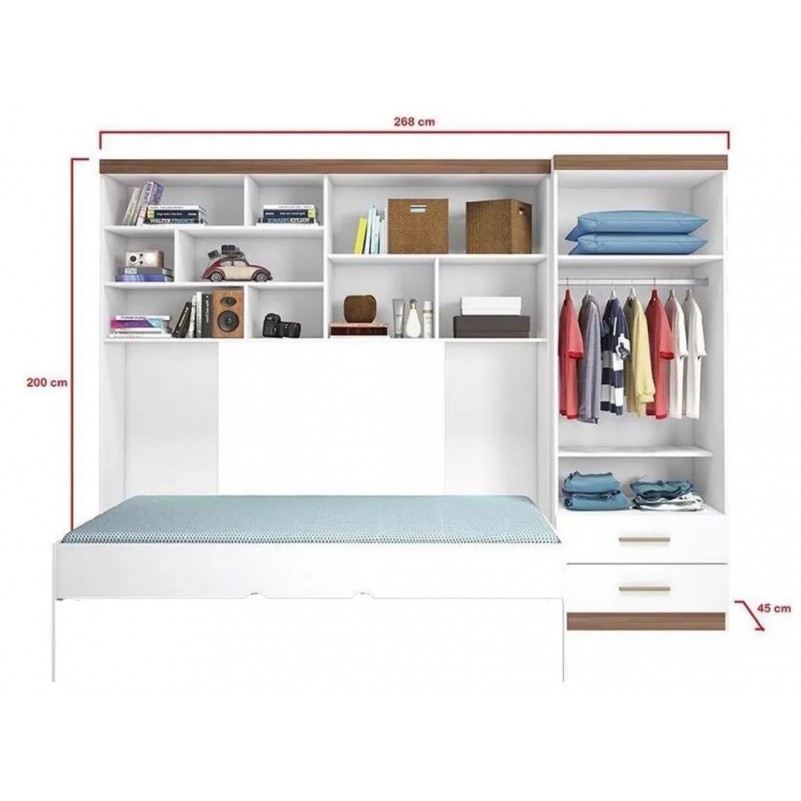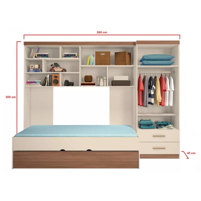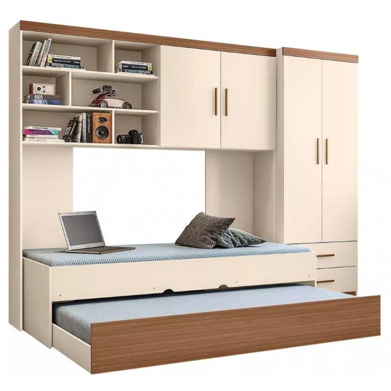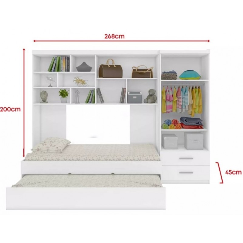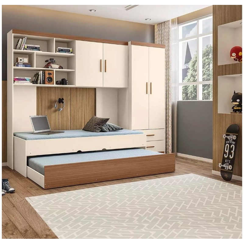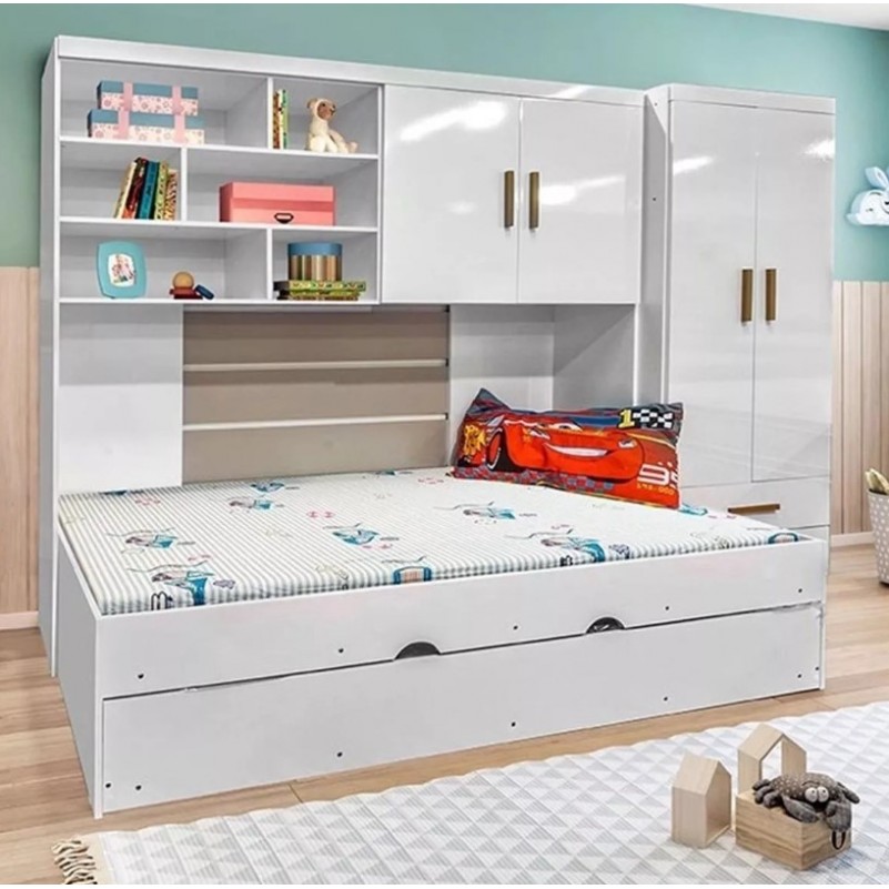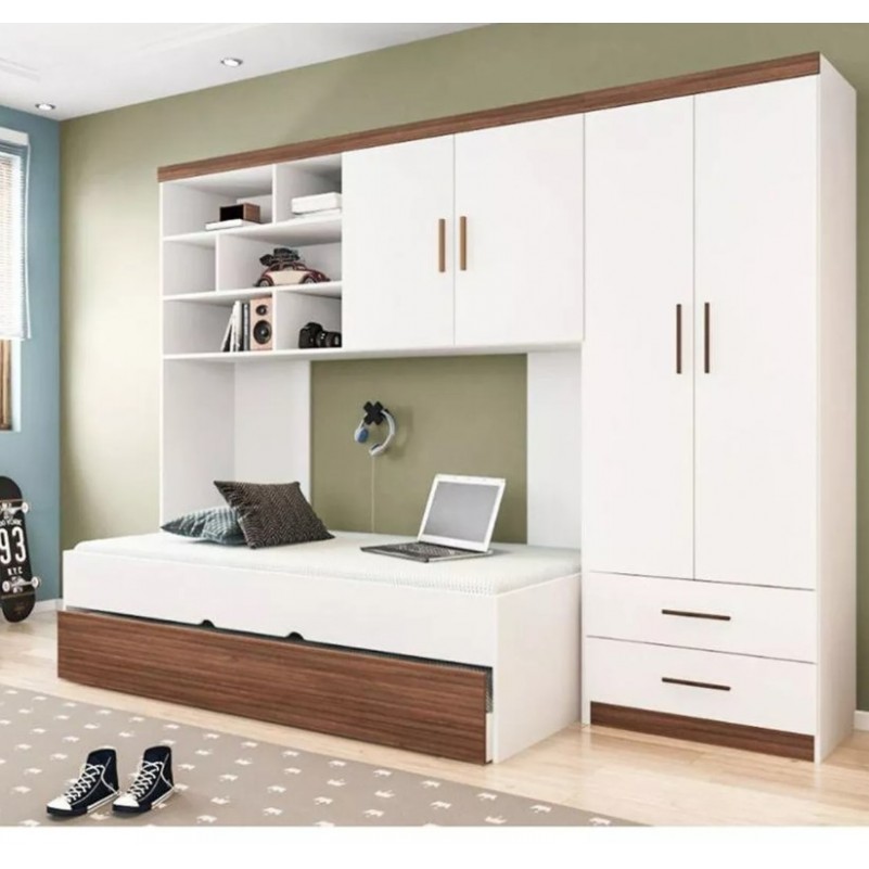 Kit Quarto Guarda Roupa Modulado Infantil 2 Portas com Bicama Solteiro