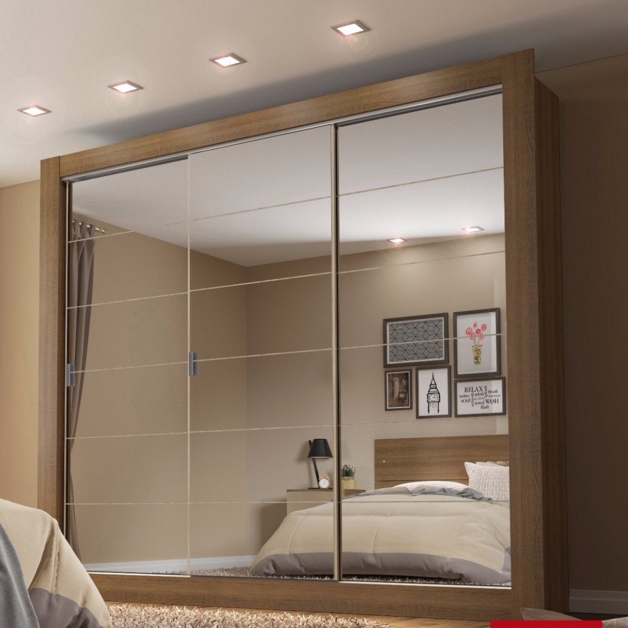 GUARDA-ROUPA COM 3 PORTAS DE CORRER ESPELHADO