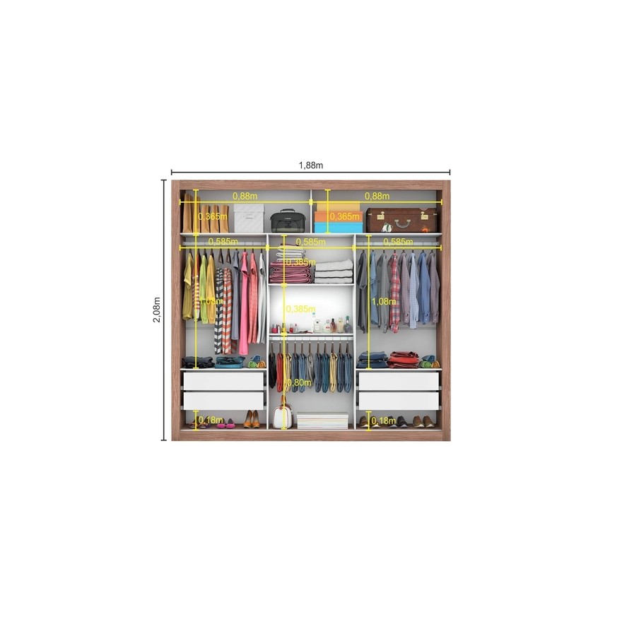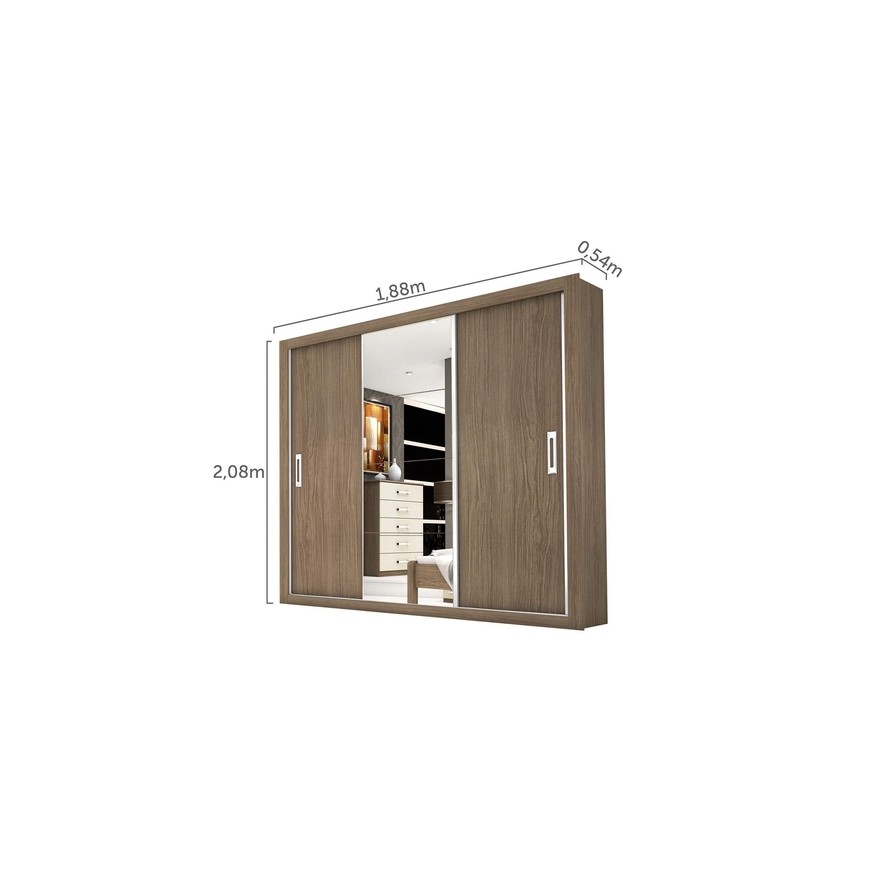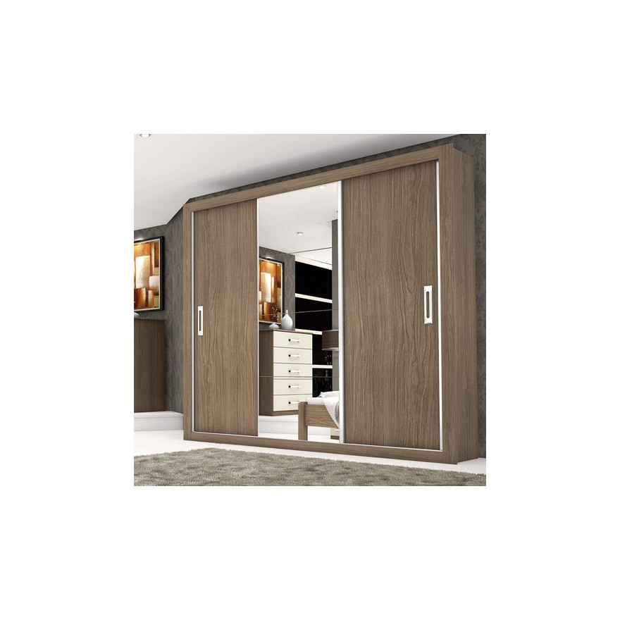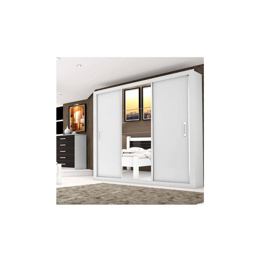 GUARDA-ROUPA COM ESPELHO 3 PORTAS DE CORRER GLAMOUR ILUMINEE