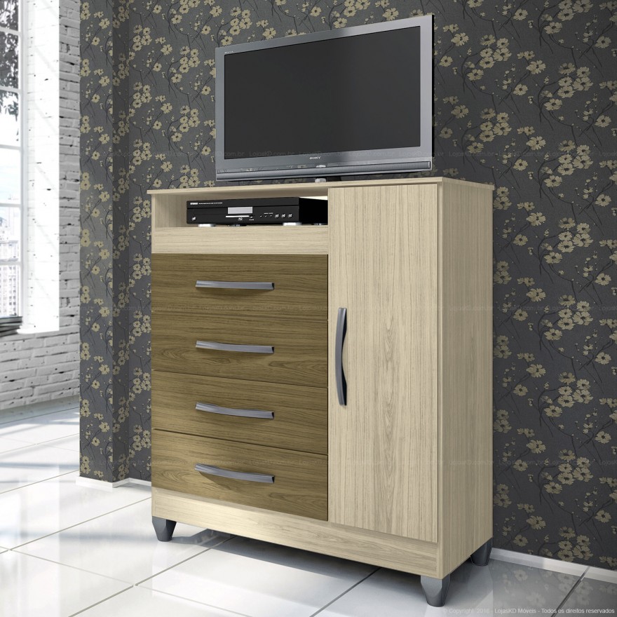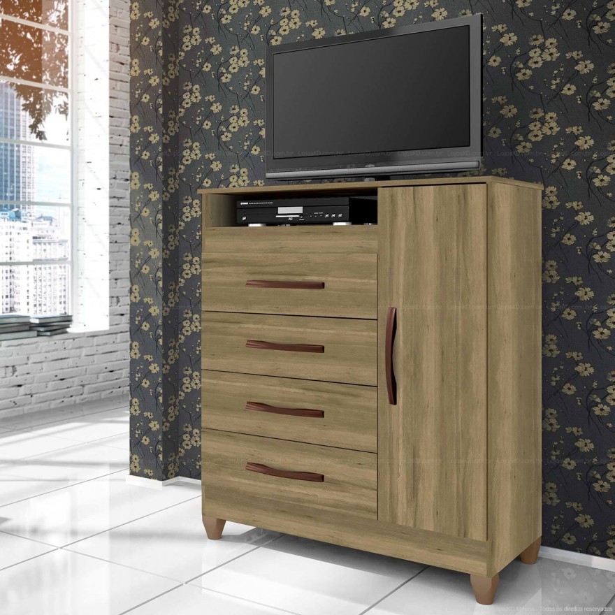 COMODA 4 GAVETAS C/ SAPATEIRA 1m EM MDP BRILHO UV
