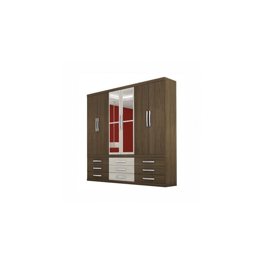 GUARDA-ROUPA RONDONY 6 PORTAS C/ 09 GAVETAS C/ ESPELHO