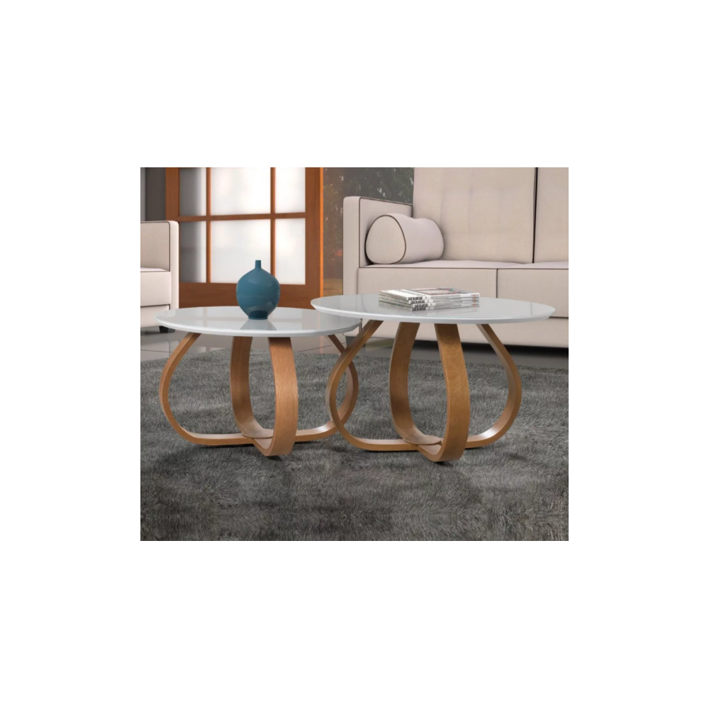 KIT 2 MESAS DE CENTRO EM MADEIRA C/ ACABAMENTO LAQUEADO