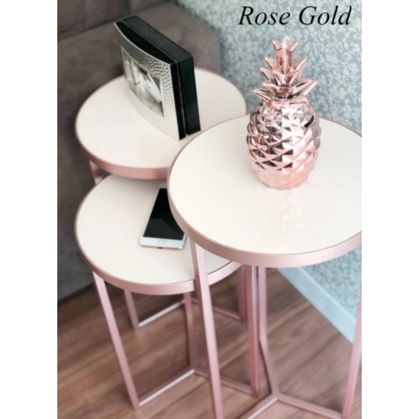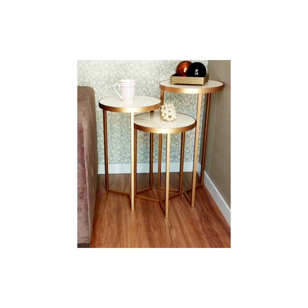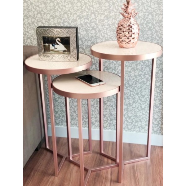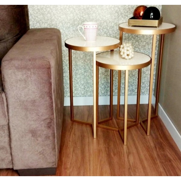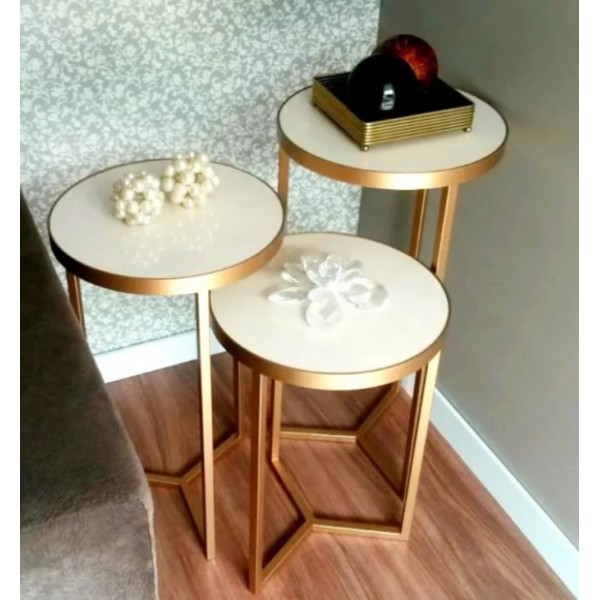 KIT 3 MESAS LATERAL WFM BASE FERRO E TAMPA E ESPELHO
