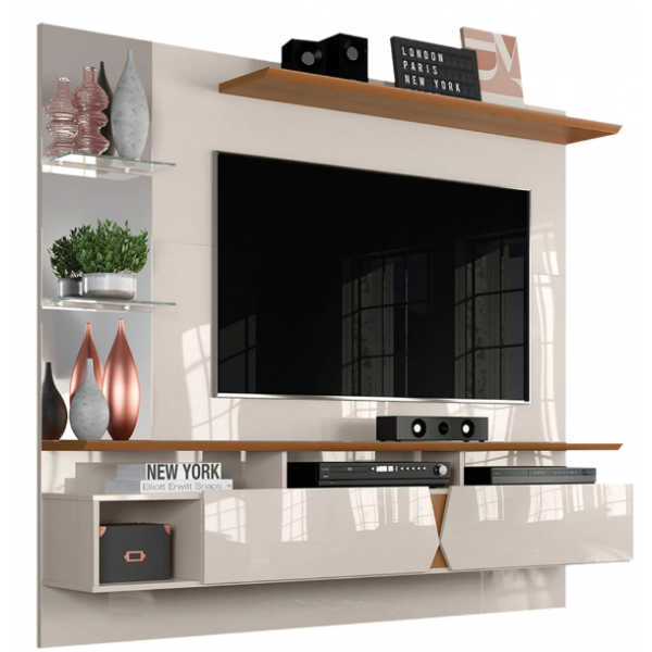 PAINEL P/ SALA DE ESTAR SUPORTA TV ATE 55 C/ PRATELEIRAS ALTO BRILHO